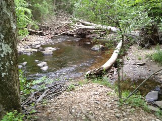 Summary: This was a decent through-hike. We began at Rt 80 and hiked south to River Rd. At first, the scenery wasn’t very interesting. After we continued down the trail for a mile or so, we came to a series of rock ledges that the trail snakes down and around. At one point, our dog had to be picked up and carried down a small piece of the trail because the drop was too substantial and there was no way around.