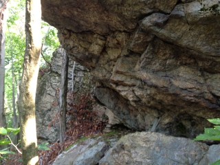We followed the trail down and around the cliff, gradually working our way back down. There was a pretty cool rock there.