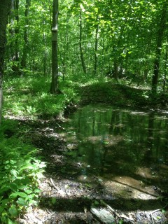 We were delighted to see that they had cut down on the potential confusion for other hikers. We then turned around and hiked back the way we arrived. We hiked back to the Braemore Preserve parking lot and took a left, following the blue-red blazes. We reentered the woods at the blue oval Lone Pine Trail sign. The next few miles was extremely muddy and flooded. Some areas had bridges but others didn’t.