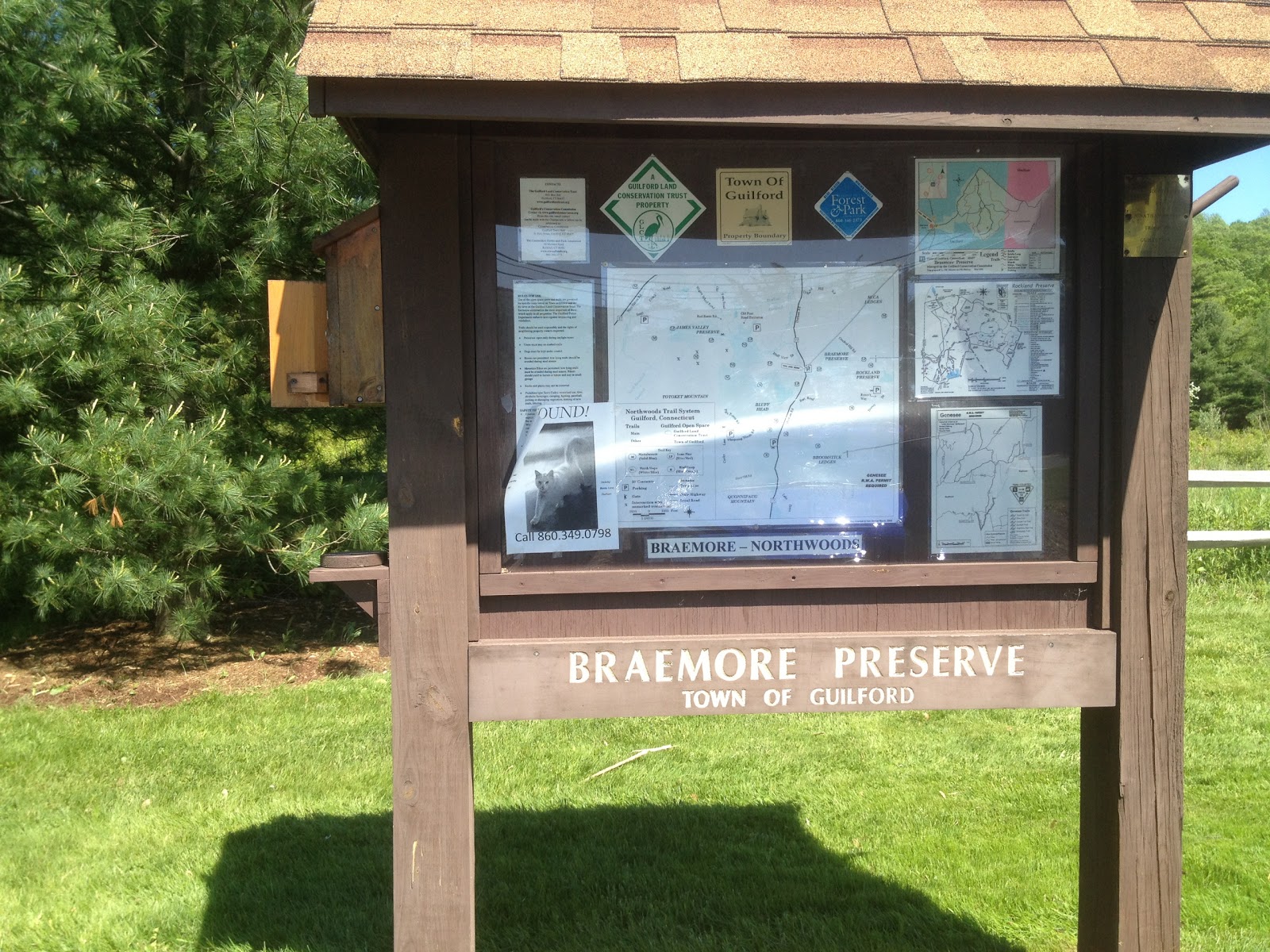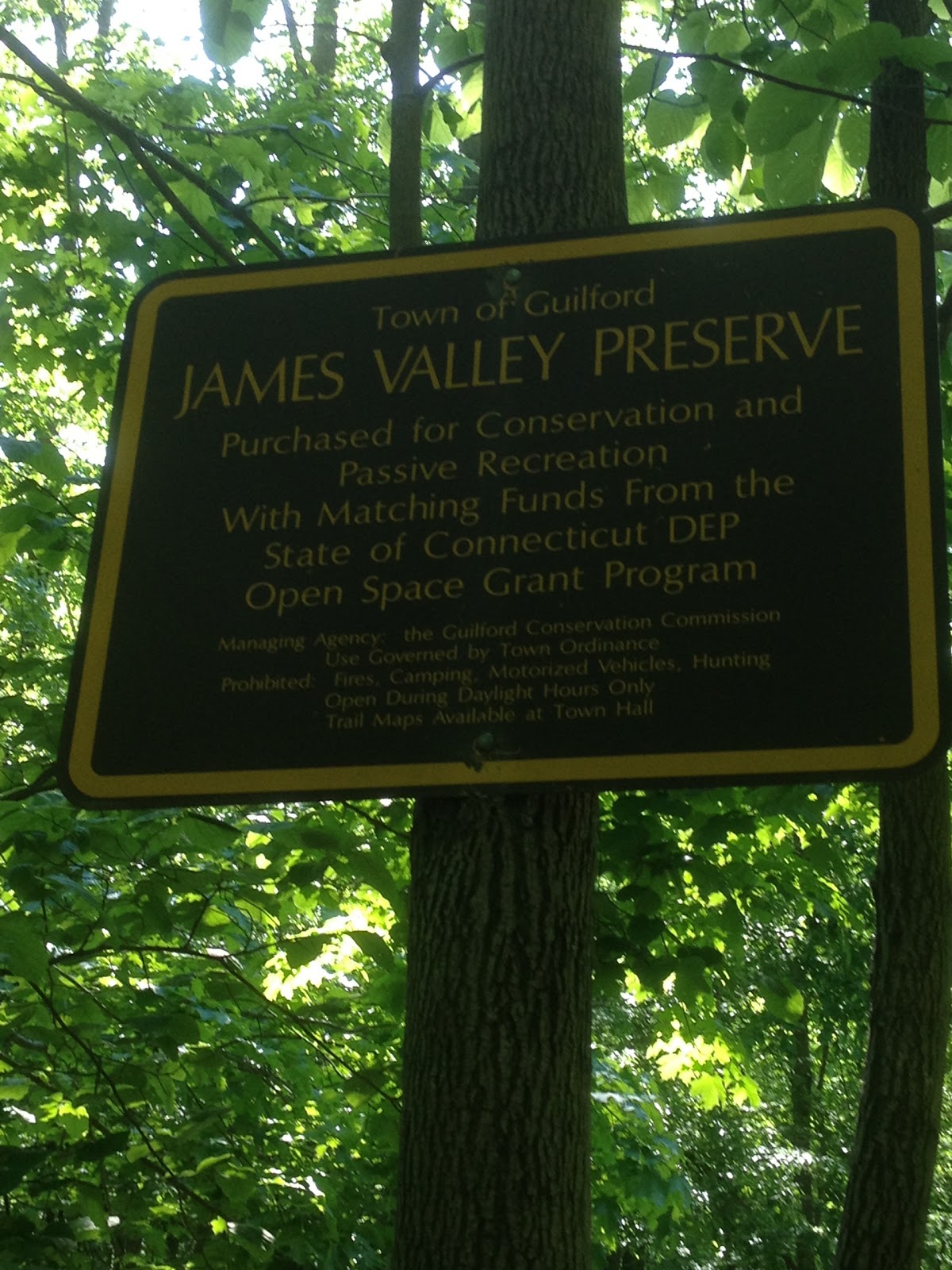 Intersection of Old Pent Rd and Durham Rd, Guilford, CT – Parking: At the intersection of Old Pent and Durham Roads, there is the Braemore Preserve. The Preserve has a gravel parking lot with space for maybe 6-8 cars.