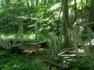 There used to be a bridge. It must have broken because they thoughtfully moved the bridge to one side.