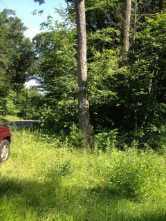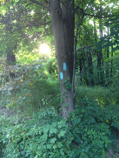 705 Wallingford Rd., Durham, CT – Parking: On Wallingford Rd/Rt-68, where the blue trail enters the woods, there was side-of-the-road parking spots with enough space to park 2-3 cars.