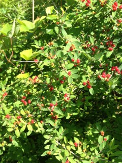 There were some Tartarian Honeysuckle (Lonicera tatarica) shrubs with colorful, albeit toxic, berries.