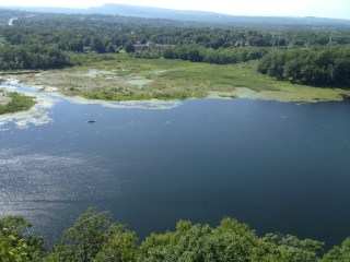 By this stage of the hike, we barely had any water left and were very tired. There was a look-out point and we could see two tantalizingly large blue pools, the second of which is part of Meriden YMCA (Mountain Mist Outdoor Center).