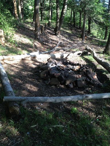 The path continued to climb. The path crossed by a stone fireplace. We saw a family with three children resting near here.
