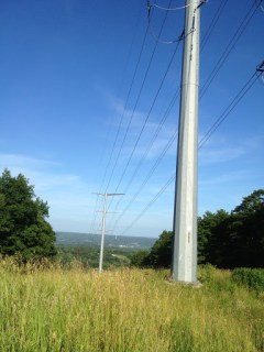 When we entered the woods, we scared a deer and a newborn fawn. They were adorable. The walk started with a gentle uphill slope. After a bit, the trail went through a clearing created by the overhead power lines.