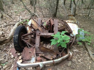 Yeah, the “panoramic” shots were 4-6 different pictures merged together using AutoStitch. Super easy to use and the results were perfect (and free). We did enjoy quite a few of the blackberries and black raspberries we found, though the constant harassment by the bugs made us move on fairly quickly. The car was in the middle of the woods, right by the side of the trail, up on the ridge near the cliff side. It was very strange.