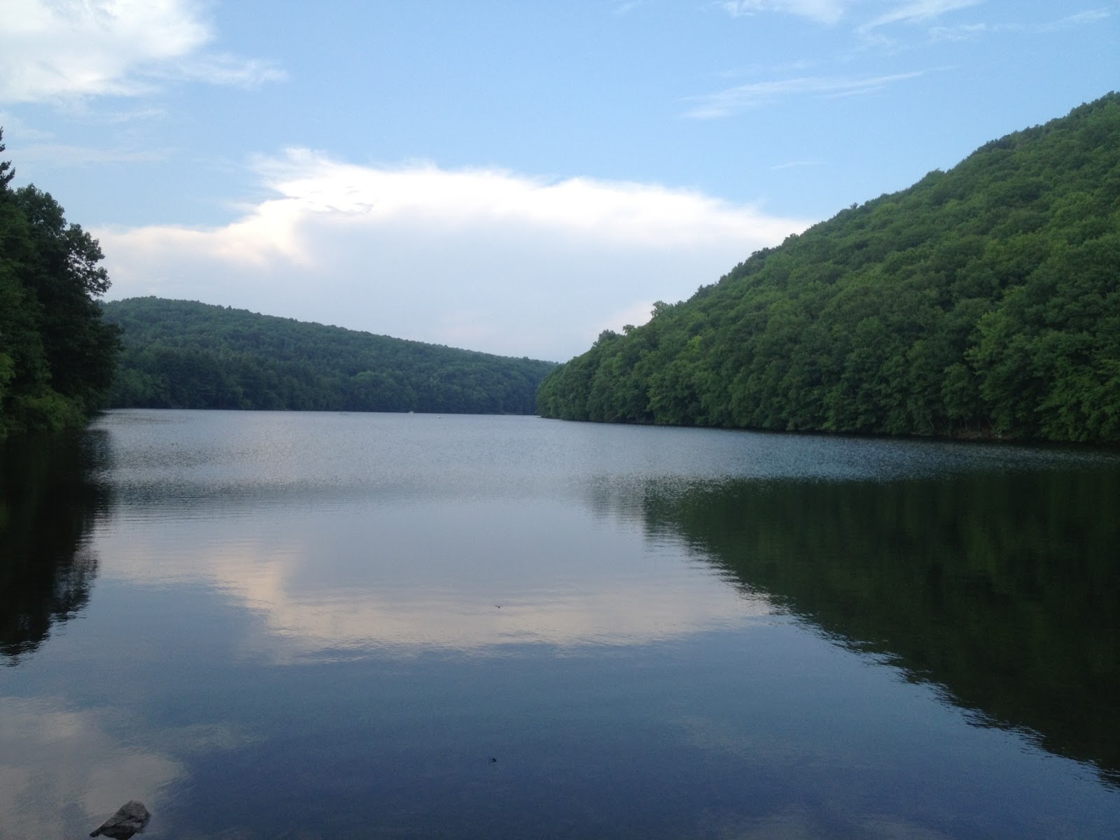 725 Westfield Rd., Meriden, CT – Parking: Technically, the parking area is inside Dr Francis Giuffrida Park (NOT the same as Giuffrida Park); Google Maps says Dr Giuffrida Park is at 500 Westfield Rd. However, if you put in 500 Westfield Rd, GPS will direct you a quarter of a mile down the road. The parking area inside the park could hold over a dozen cars; it seemed like a popular fishing and dog-walking spot. The Blue trail is easy to find as it runs right past the parking lot and the Bradley Hubbard Reservoir. We hiked from here.