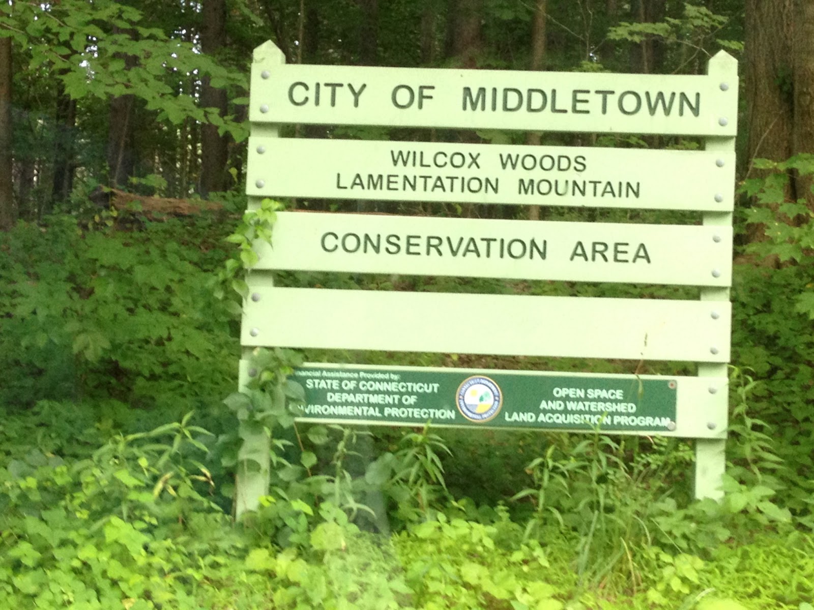We followed the Blue trail until we saw the Blue-Red on our left; it was a good thing we’d been there before as the trail wasn’t clearly marked on our side. We arrived at our car parked on Footit Drive! Right where Footit Drive turns to gravel, there’s a sign noting the conservation area.