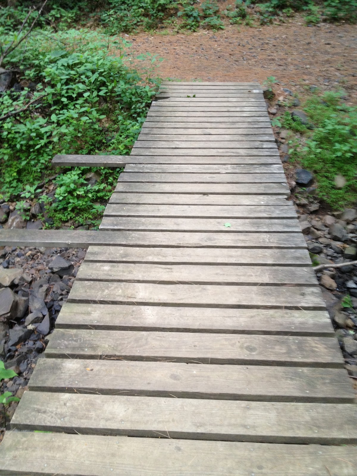 A little way down the trail, there was a deep creek bed with a bridge crossing over it.
