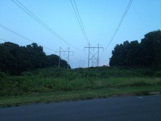 We had a hard time finding the trail after it crossed under the lines. We eventually found it, on the right hand side.