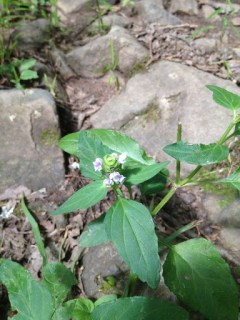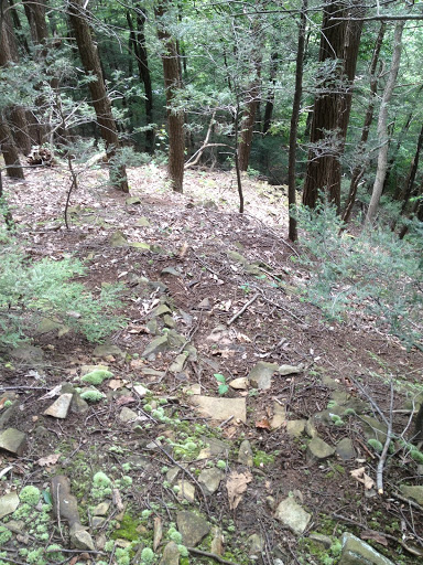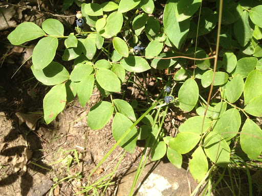 And then there were no more. This area needs the markings removed or covered. It was very confusing to have blue marks remaining when the trail did not travel this way anymore. We tried to follow what we thought was the trail for a bit and found a huge patch of American Red Raspberry (Rubus idaeus) growing on a trap rock incline.