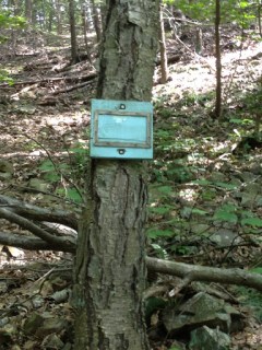 After a bit more hiking, we passed over Chamberlain Highway; the blue trail was straight across the road and easy to see. Right after the highway, we crossed Cathole Brook.