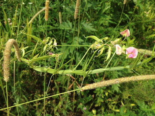 There was a pink flower, perhaps a Small Wild Bean (Strophostyles leiosperma).