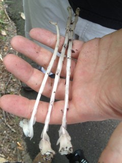 Along the road, we found Indian Pipes (Monotropa uniflora) as well. They are edible but potentially toxic eaten in larger quantities.