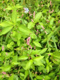 We saw some pink Long-bristled Smartweed (Polygonum caespitosum) by the trail head next to Castle Craig.