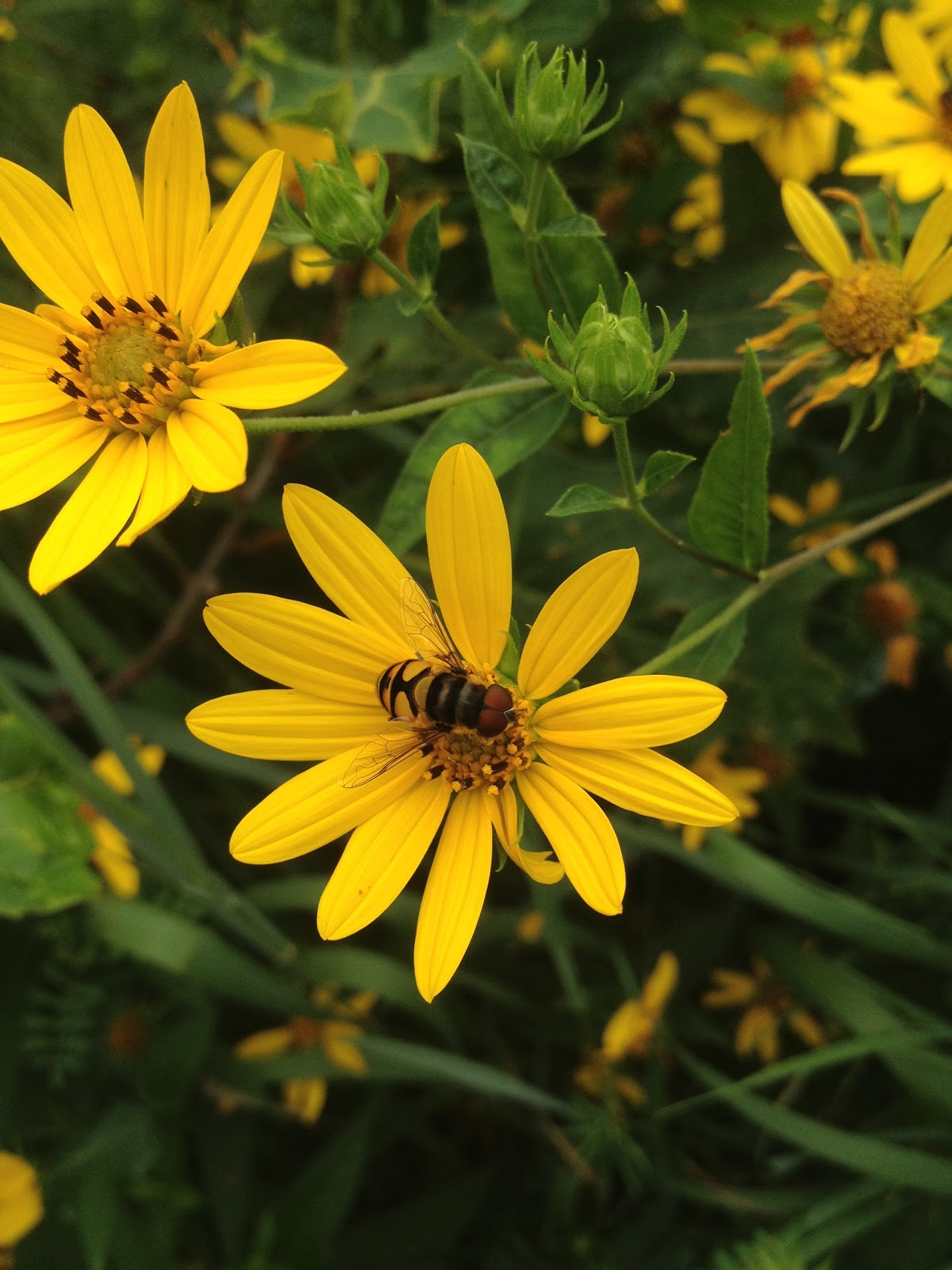 Around the flowers, we saw both honeybees and hoverflies.