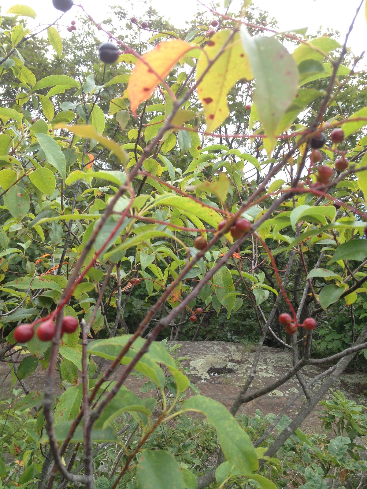 We saw Low-bush Blueberries and American Red Raspberries at the peak. There was also mysterious plant with berries we didn’t recognize.