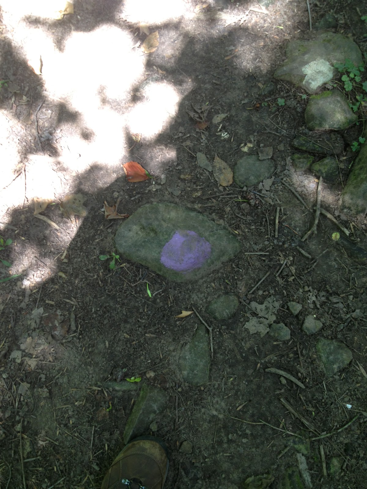 We went back up the trail a little bit and found the many (old) blue markings we’d been following.