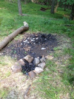 There was a fire ring near the peak with what appeared to be two burned pillows.