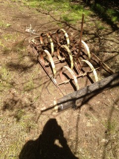 Nearby, there was a tool meant to be dragged behind an ATV to clear out an area for camping.