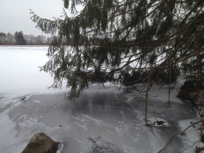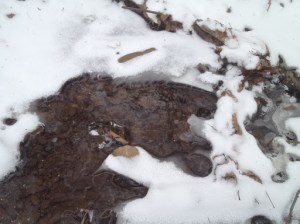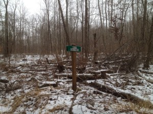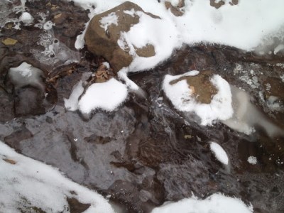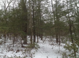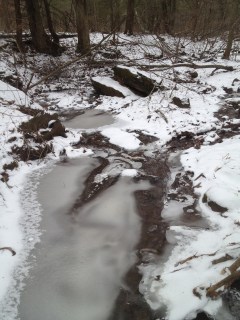 The trail meandered through woods, crossing the same stream three or four times. It would have been a very swampy area but everything was frozen.