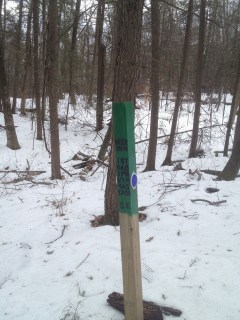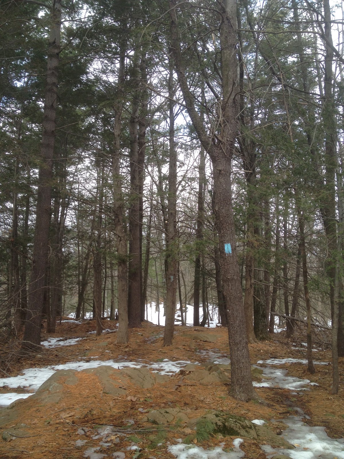 After the initial climb, it was mostly a ridge walk. We passed by signage for the “George A Harmon Woodlot” and “Deer Run,” both part of the Suffield Land Conservancy.