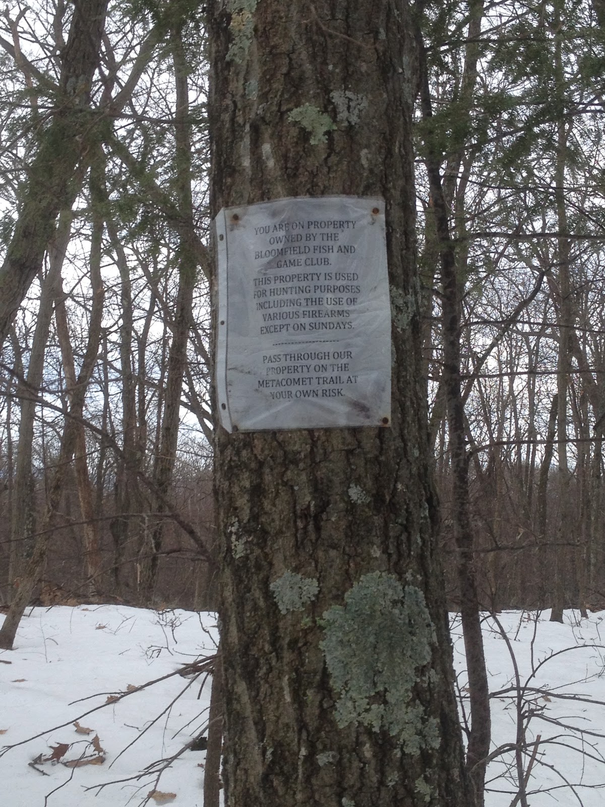 Once we reached the next plateau, a sign let us know we were entering the property of the Bloomfield Fish and Game Club and we might be shot.