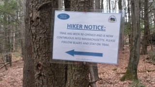 Nearby, there was a sign informing us that the Metacomet trail was reopened and we could hike through to Massachusetts.
