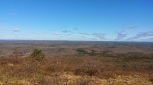 | North on the AT – direction I came from; you could just make out the NJ High Point Monument between the two power line poles in the distance. |