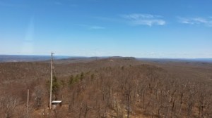 I started out my hike this morning at 6:25am. I would have been out even earlier but my feet needed to be bandaged. Throughout the course of the day, I climbed Rattlesnake Mountain (1,492′) as well as up to the Catfish Fire Tower (1,565′).