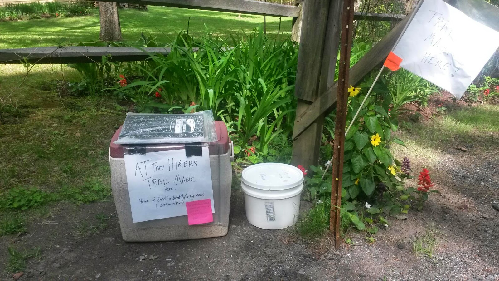 Today didn’t have any serious elevation but I did climb Dana, DuPuis, and Thistle Hills and they were quite enough of a challenge. I got to see blue sky for the first time since Wednesday around 10:30am. I had great weather for the entirety of today’s hike though the grass was soaked in dew until the sun evaporated it so my boots got fully saturated. The trail led straight past West Hartford Convenience store but they were closed because they never recovered from Hurricane Irene last fall and had to shut down, based on a note on their door. I sat on their front porch and changed my wet socks and silk liners for marginally drier socks and liners.