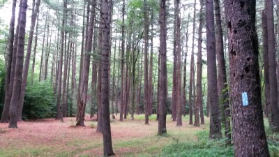 From there, we road walked down West Woods Rd, over Whitney Ave, and then into the woods by Sleeping Giant. The trail lead around Mill River back to Mt Carmel Ave.
