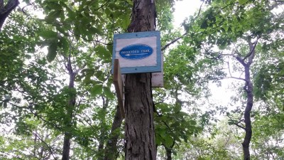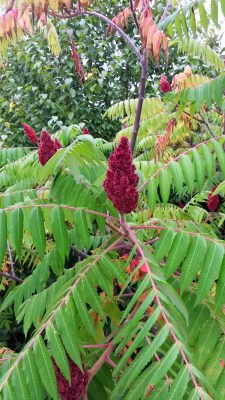 The trail entered the woods again at the end of the cul-de-sac, fairly quickly leading to a road walk along Old Coach Hwy, Nolan Rd, Shepard Ave, and Rocky Top Rd. We then entered the woods again to the left side of Rocky Top Rd. This took us up and over York Hill. This portion of the trail was relatively overgrown and very noticeably so because of the prickers. There was some nice Staghorn Sumac (Rhys typhina).