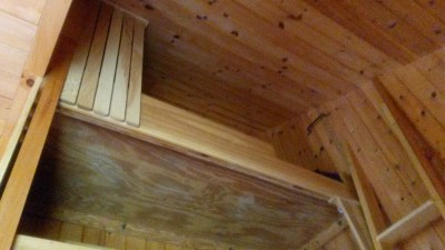 I arrived at 2:15pm. I got settled in my bunk (they had triple bunks and a quad bunk!). The storm held out until about 3pm and then it began to downpour. Looks like the hut will be full tonight; a lot of folks who were going to camp out have changed their minds! Daddy Long Legs and Baby Steps found bunks to stay the night. 🙂 Thus far, the hoards of loud children are in the bunk room across the hall and not in mine; I hope it will stay that way.