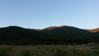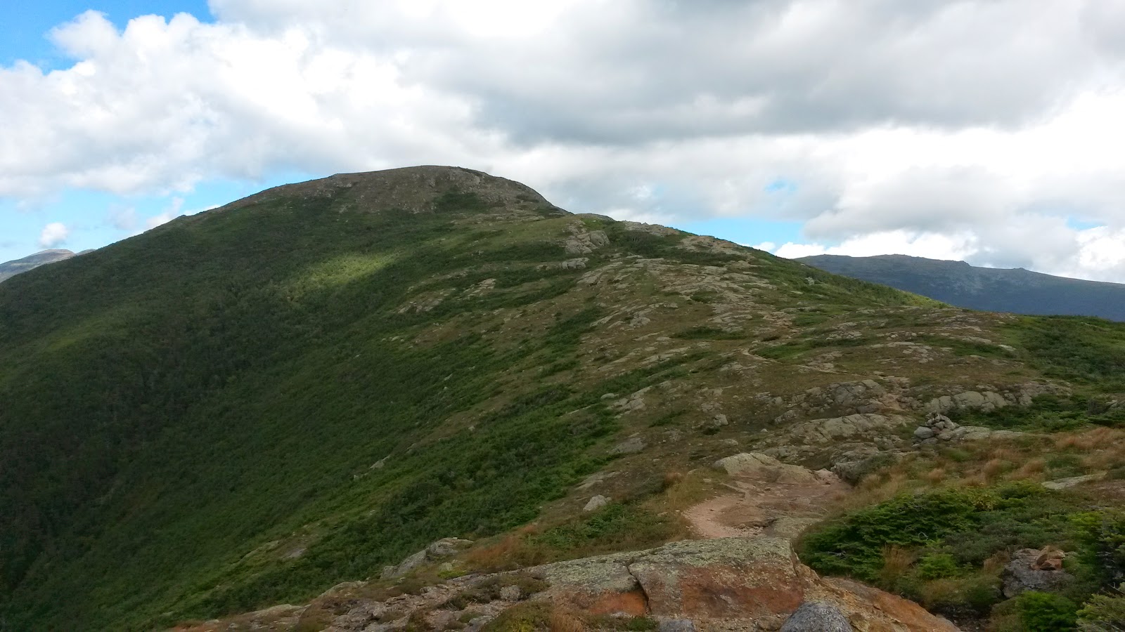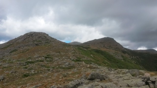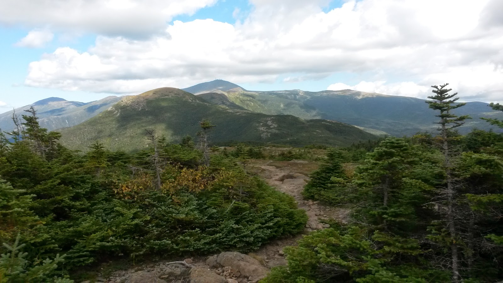| First view of Mt Washington, from Mt Jackson. You can see Mizpah hut as a white speck on the left hand side below the first ridge. |