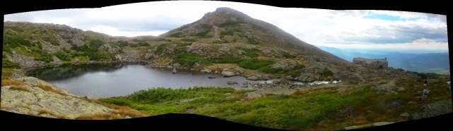 | Lake of the Clouds, the hut, and Mt Monroe |