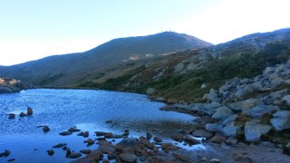 | View of Lake of the Clouds hut from partway up Mt Washington |