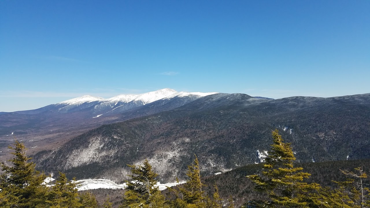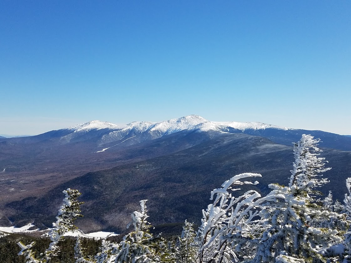 I headed across the railroad tracks and up Avalon Trail. After 1.3 miles, I went straight to connect to the A-Z Trail. I hiked on that for 1 mile, until the junction with Willey Range Trail and the Mt Tom spur trail. I headed up Mt Tom (4,051′) and had limited views from the summit due to the trees at the peak. I went back down to the trail junction and then continued up Willey Range Trail. Within 0.9 miles, I came to the summit of Mt Field (4,340′). The snow was fairly deep (step off the packed path and I’d be in snow up to my mid thigh) and at the top of Mt Field, the snow was starting to be less firmly packed.