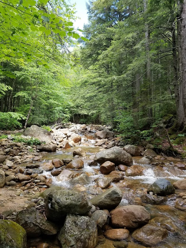 I woke up early and hit the trail by 7:30am. The rain from the day before had cleared, leaving the air humid and heavy. When I parked my car, I could see mosquitoes mobbing my car before I had even left it. I had neglected to bring bug spray, so I took off down the trail with the mosquitoes trailing behind. The trail was smooth for the first few miles, with frequent brook crossings, and then became more steep and rocky.