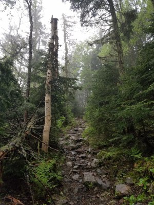 I stayed overnight at the Highland Center in the Shapleigh bunkhouse. I worked remotely from 7am-3pm and then headed out for the Hale Brook Trailhead. It had been raining all day, but turned to mist by the time I hit the trail around 3:30pm.