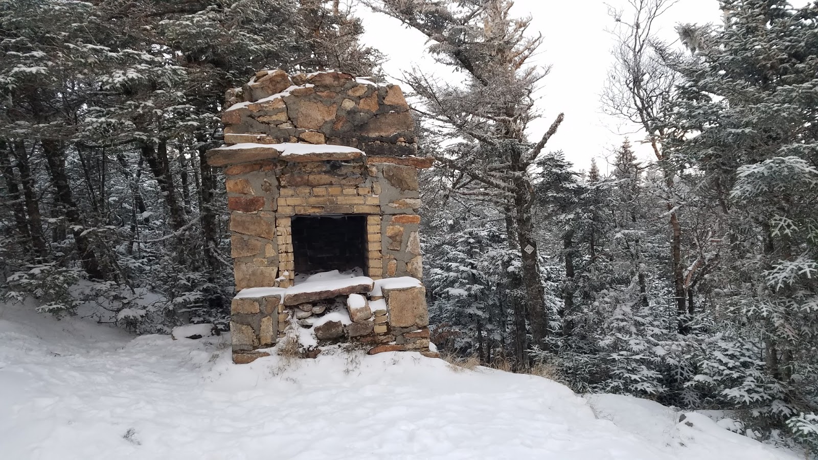 The trail goes across Mount Starr King before heading to Mt Waumbek. Near the peak, there’s an old chimney/fireplace. The sun was starting to go down by the time I arrived at that peak.