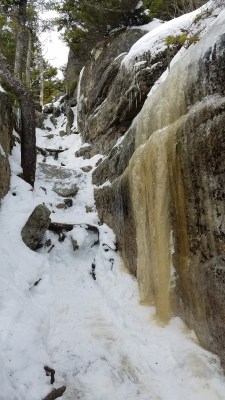 I then returned to my car by way of Dicey’s Mill Trail. While it was sunny with clear skies and relatively warm, there was as much as 4 inches of snow accumulated on the trail, with sections where the trail was just one big sheet of ice.