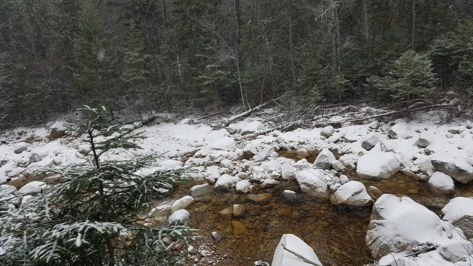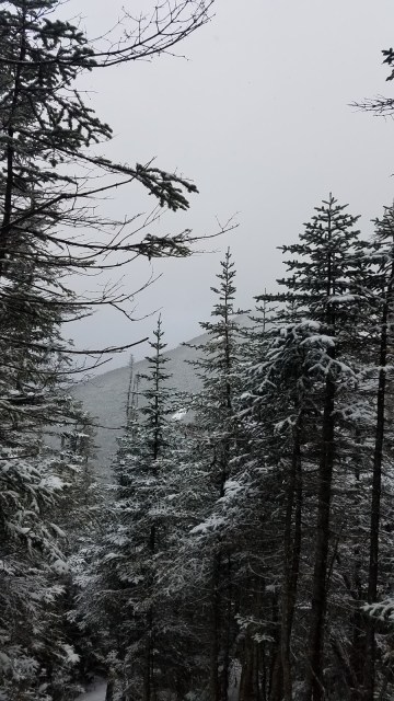 Along the way back down, I did get a few momentary glances of Hancock through the swirling snow.
