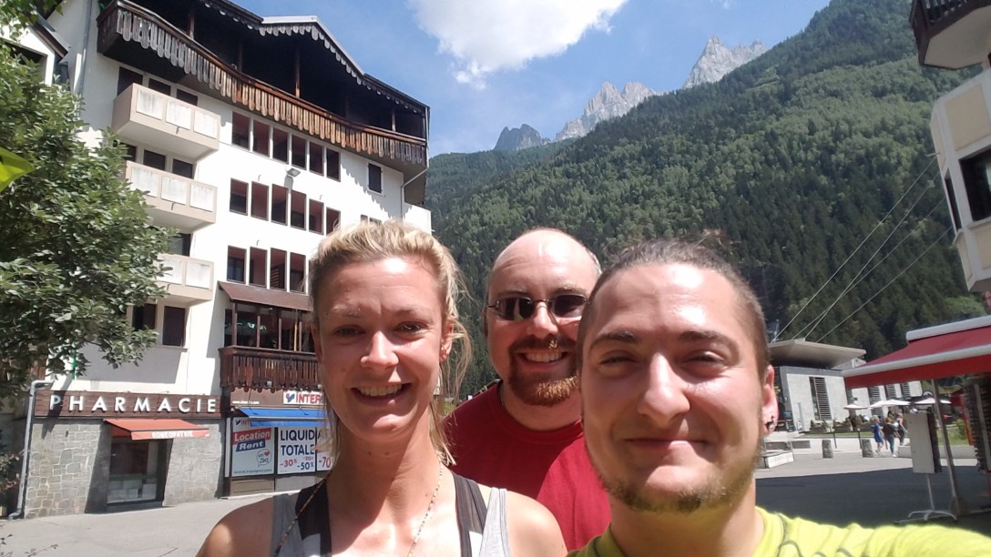 After that exciting adventure, it was around 12:30pm, so we went to the Aiguille du Midi’s cablecar to get our number in line, kind of like a deli. It was on car #53, and we were given car #67, so we went over to Spar to grab more snacks and some presents for folks back home. While we were hanging out in the shade (and I was drinking a beer – public consumption is legal in France), we saw Robyn walk by! We flagged her down and we sat chatting for the next half-hour while we waited for our number to come around.