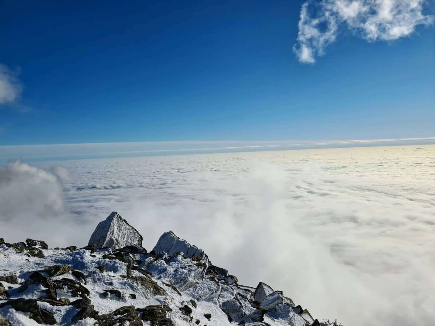 We hiked across the pond and turned onto the AT, following that to the road near Katahdin Stream Campground. We then headed down the road to Abol Campground and started our hike up the Abol trail. We were able to make the summit of Katahdin Baxter by 10am, despite some trouble wayfinding on the top half of Abol. We found ourselves above the clouds with a beautiful undercast, with sun and blue skies and almost no wind.
