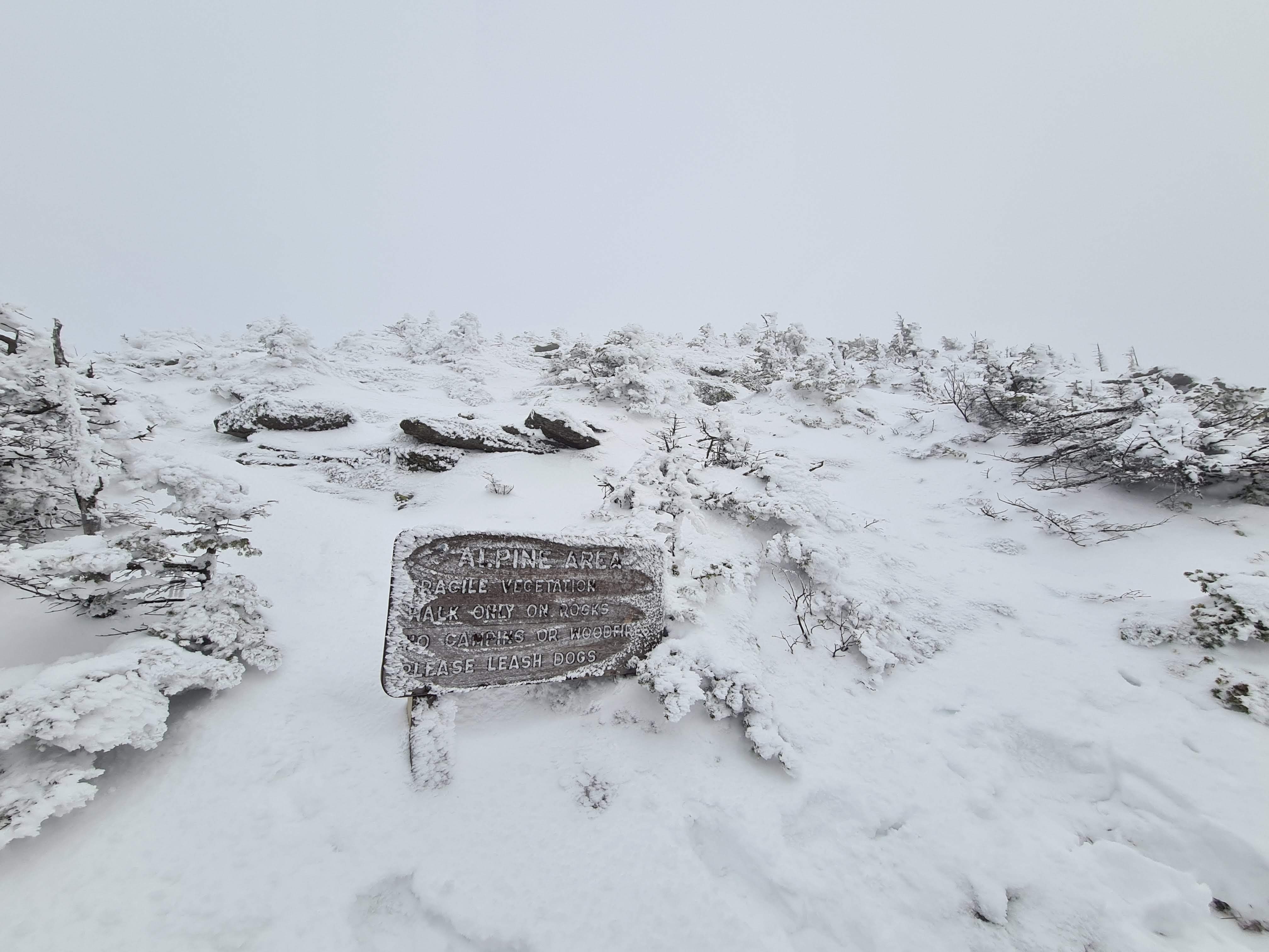 I headed out from the trailhead in my microspikes, since there were 6+ cars already there and the trail looked very packed down. I followed the trail up ~2.2 miles to the intersection with the Long Trail. I took a right and headed up the tenth of a mile to the summit. The ~30 MPH wind on the summit was constant and stopping to take a few pictures made my fingers go completely numb. I quickly hurried back below treeline, and to get my hands warm again, started running downhill. I found the terrain so smooth and easy that I continued to run all the way back to my car. I made the round trip in less than an hour and 45 minutes!