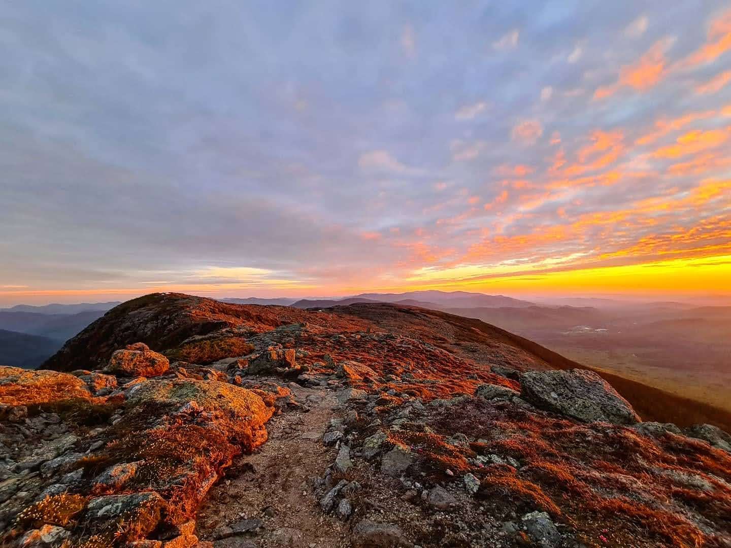 We summited Monroe by 7:45pm, put on our headlamps, and continued into the sunset. We passed by Franklin around 8:15pm and were able to watch a beautiful, alpineglow sunset over the ridge as we hiked onward. We summited Eisenhower by 9:30pm in the dark, and then started the long slow descent. We passed by Pierce at 10:45pm, and the intersection for Mizpah Hut at 11:45pm. We arrived at our car in the Crawford Notch lot at 1:15am. We piled into the car and headed back to our campsite at Dry River Campground for a hot shower and dinner!