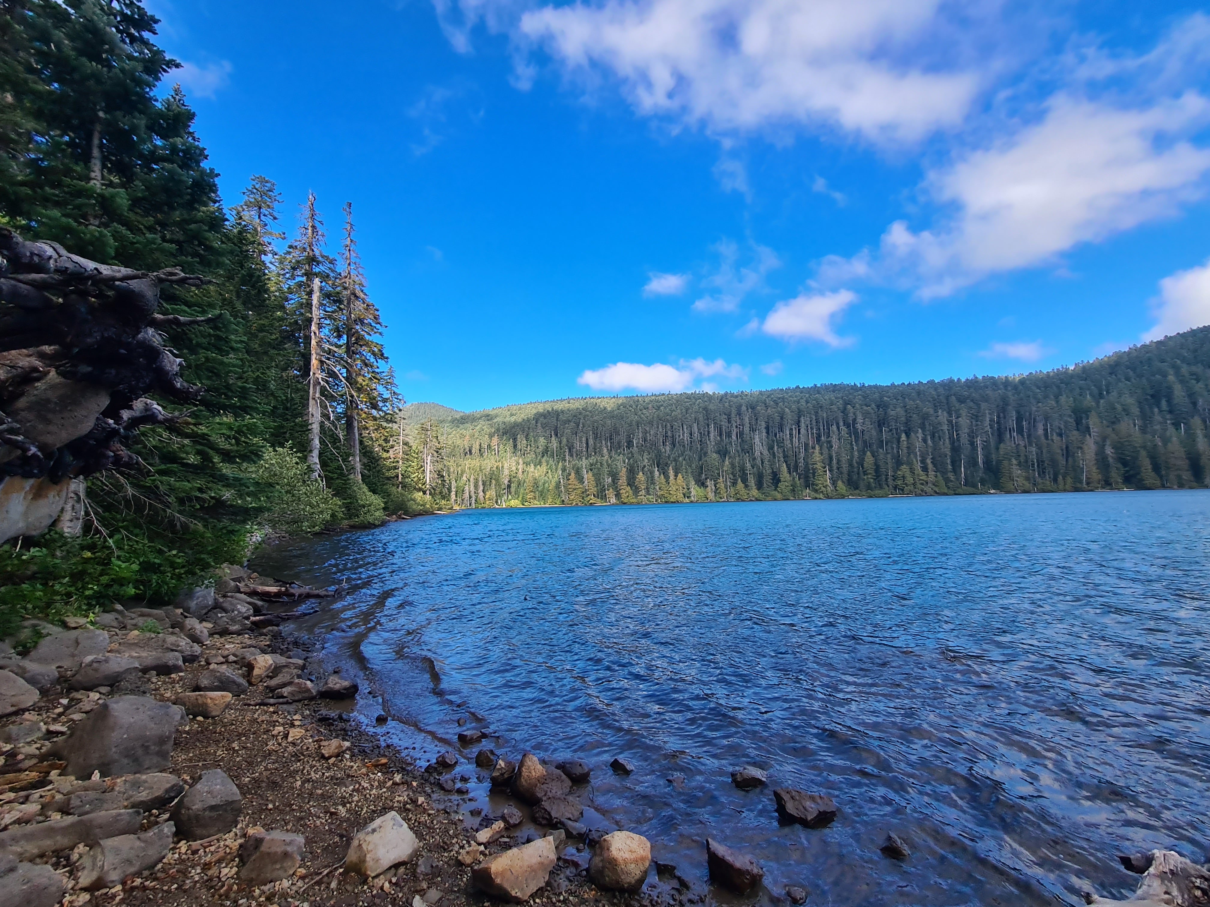After a very late night and a long day yesterday, I was awake at 5:45am and on the trail running by headlamp around 6:30am. I only needed extra light for half an hour until the sun rose and the sky lightened. Eagle Creek ravine was beautiful – the water was rushing and there were many waterfalls, despite it being fall. It was magical to walk behind Tunnel Falls through a wet rock tunnel! But Seven Mile Falls, Twister Falls, Wy’East Falls, Skoonichuk Falls, Punch Bowl Falls, and Metlako Falls were all gorgeous as well! The incline was very gradual, and I found myself running for many portions of the trail until it began the climb up towards Wahtum Lake. The trail was very smooth and I could have pushed it even harder on the uphill if it was a shorter effort, but I kept myself to a steady pace. I discovered after the fact that I’d set an FKT for the Eagle Creek Tunnel Falls route, and added my time to the board.