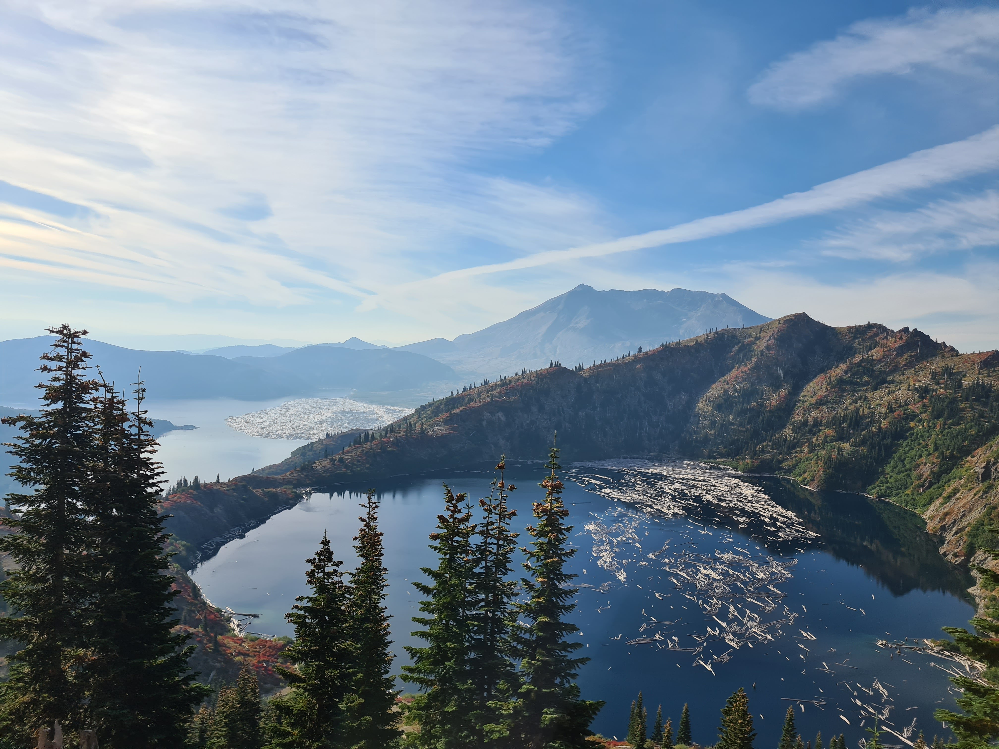 I was delighted to be back under tree cover as I got closer to Coldwater Lake; the shade was so welcome after the many miles of exposed trail with relentless sun and 85+ degree heat. I sat to filter water in the shade for a few minutes and then pushed onward. As I circled the lake towards the Mt St Helens Science and Learning Center, I saw Arturo sitting in the shade resting. We talked for a moment and then I pushed on. As I climbed the final set of switchbacks up the hill towards the center, I almost caught up to a group of 14-milers and we arrived at the center right about the same time.
